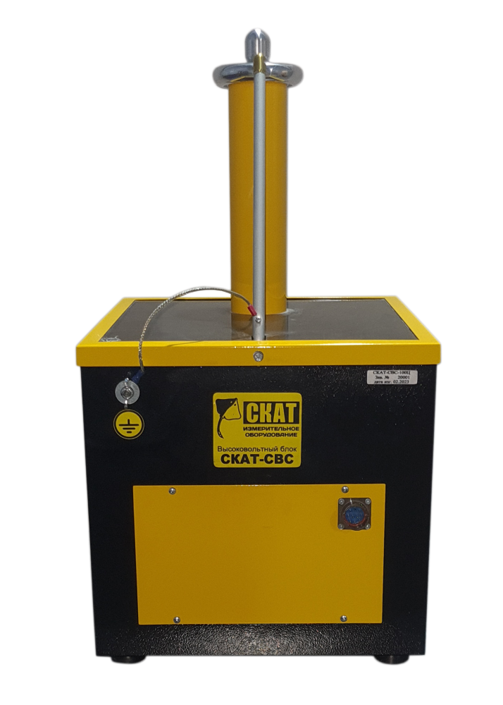 СКАТ-СВС предназначен для проведения приёмосдаточных и эксплуатационных электрических испытаний средств защиты (изоляционные штанги, резиновые боты, перчатки, электроинструмент и т.п.) переменным напряжением промышленной частоты, регулируемым в пределах от 0 до 100 кВ.