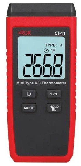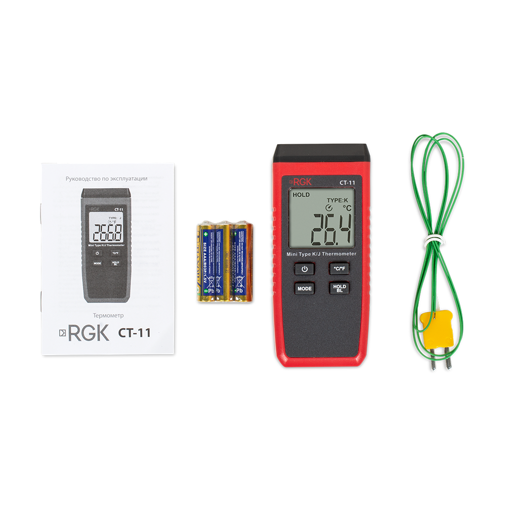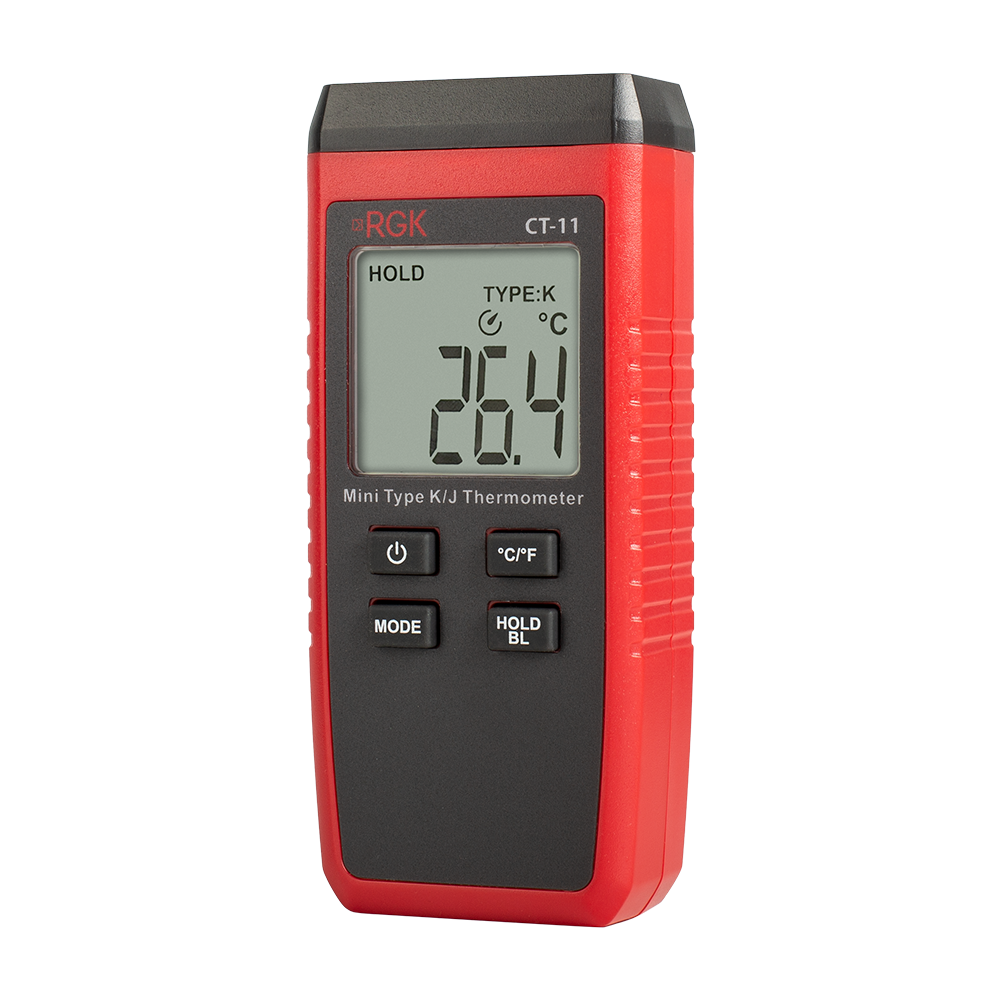 В базовом исполнении одноканальный контактный термометр RGK CT-11 измеряет температуру в диапазоне от - 40 °С до + 260 °С с погрешностью не более ± 1,5 °C. Контактный способ работы позволяет точно определить температуру любой поверхности, жидкости или газа.