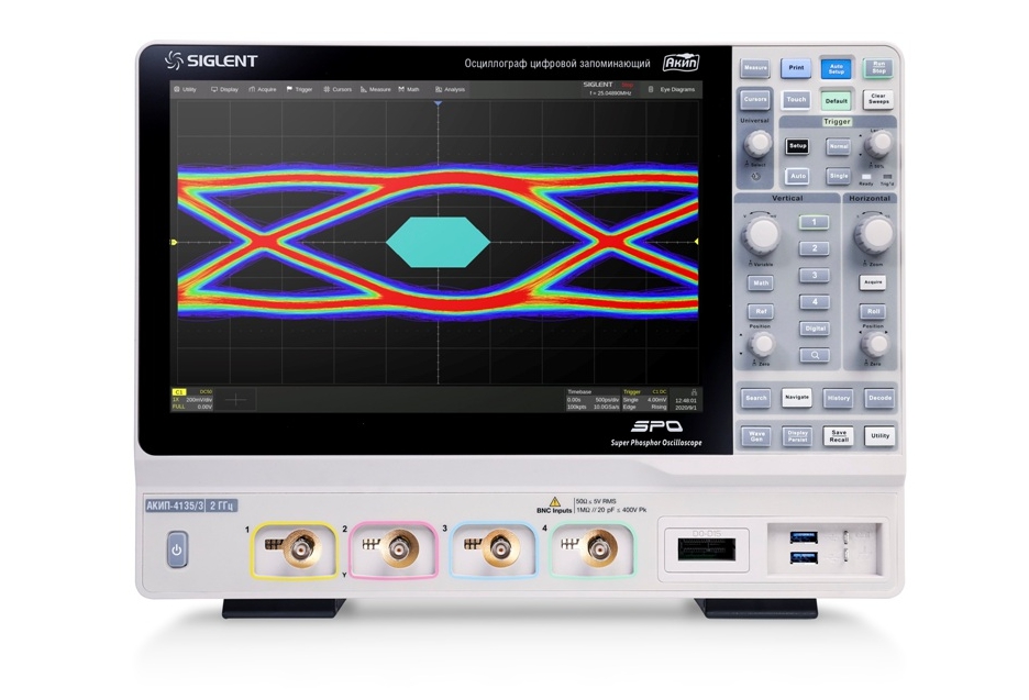 Осциллограф с высокой скоростью обновления экрана и режимом сегментированной памяти. Автоматические (более 50-и параметров) и курсорные измерения. Математические функции, БФП (8 МБ). Режим «Поисковая машина/ Search» для поиска событий по условиям заданным пользователем.